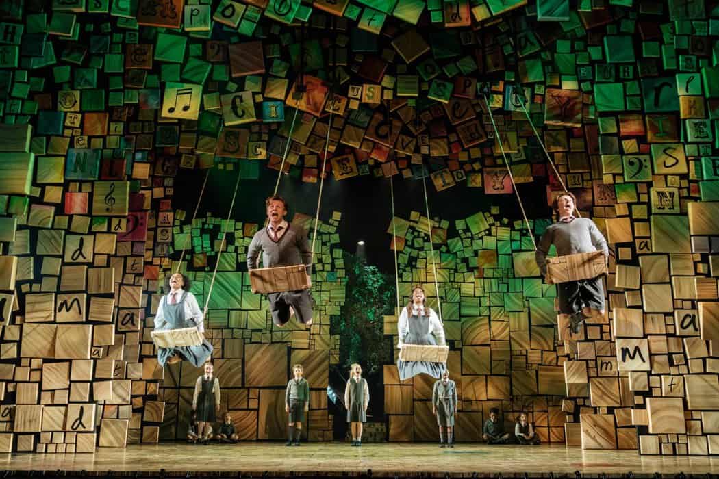 Children on swings. Matilda the Musical Review at Bristol Hippodrome